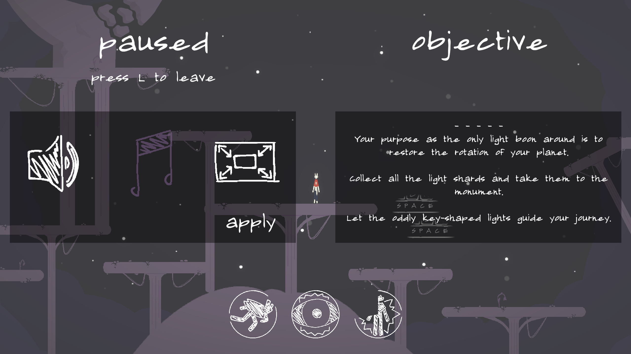 Your name is Mwanga. Navigate the cloud ruins, collect all the light shards, and sacrifice yourself to restore rotation to your planet.